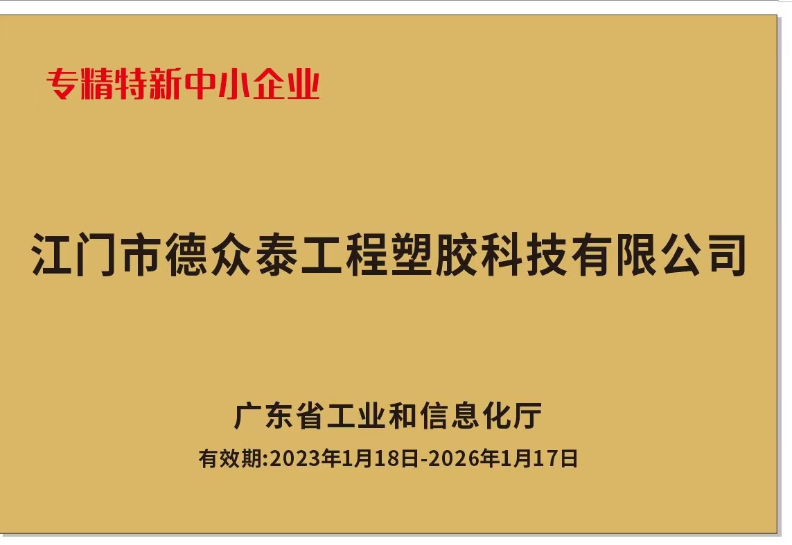 熱烈祝賀江門(mén)市德眾泰工程塑膠科技有限公司通過(guò)“廣東省專精特新"企業(yè)認(rèn)定。